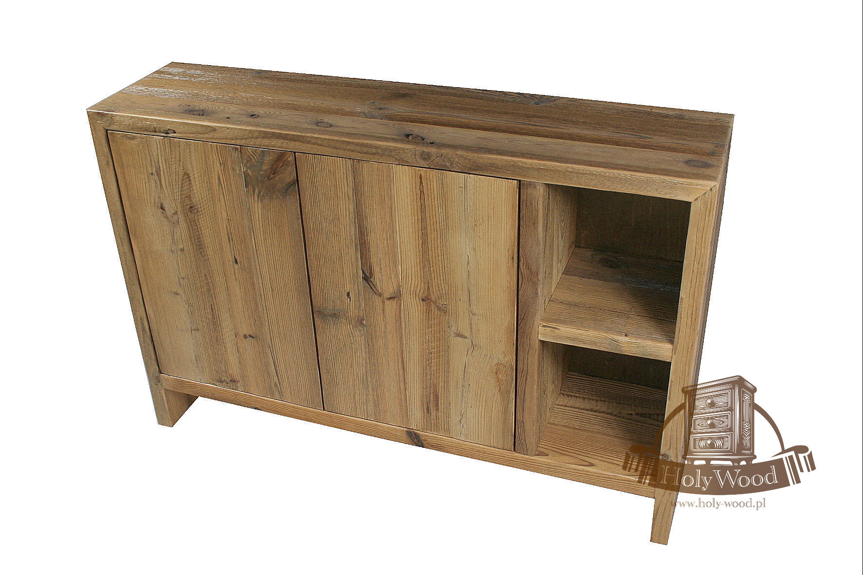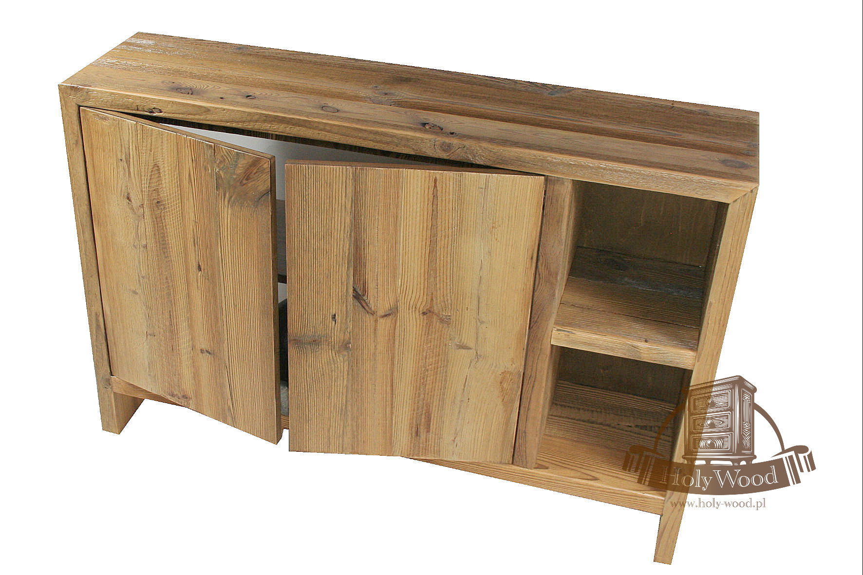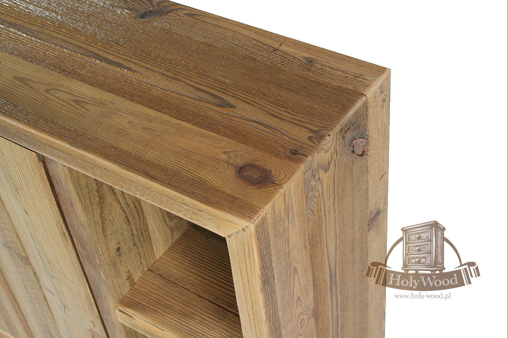 Całość  wykonana ze starego drewna sosnowego . Posiada ono bardzo nieregularną strukturę oraz głęboko wybrane słoje.
