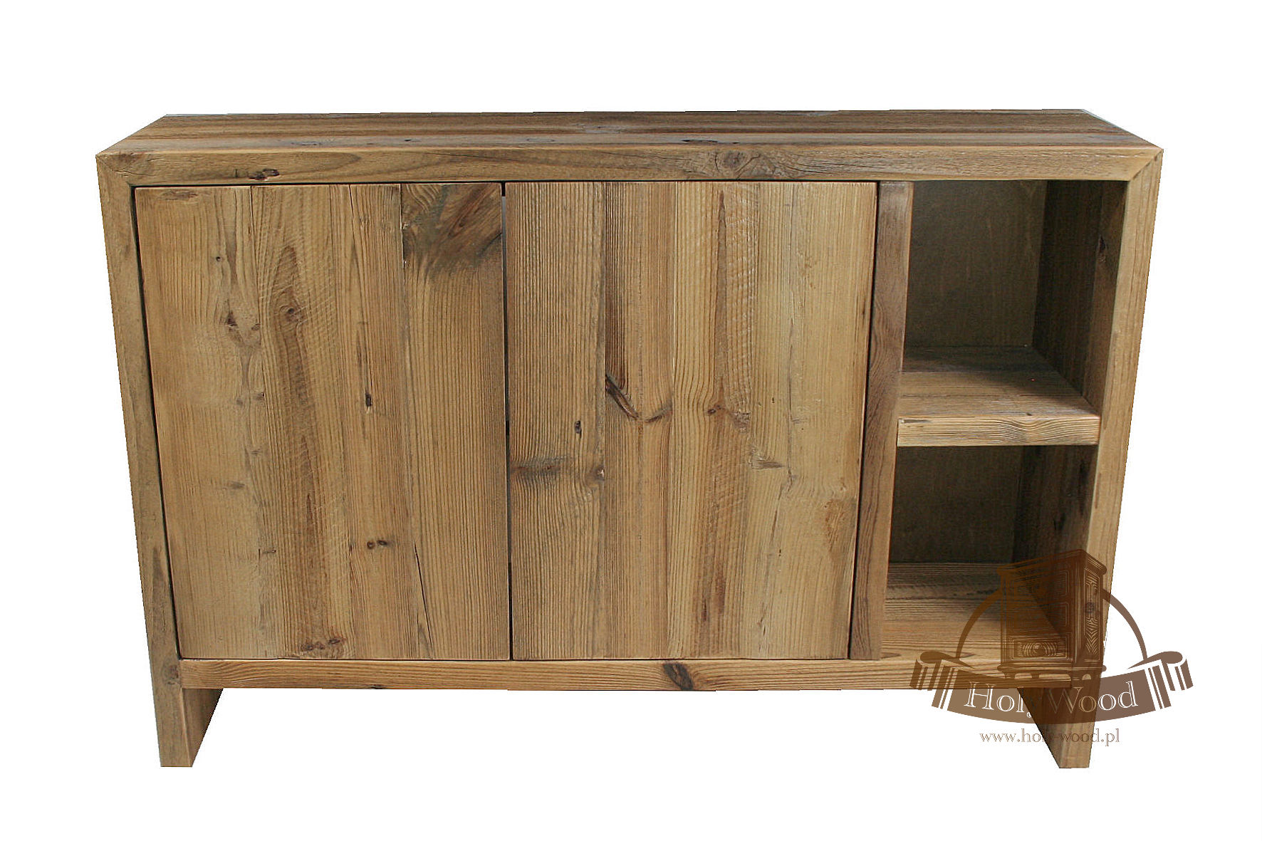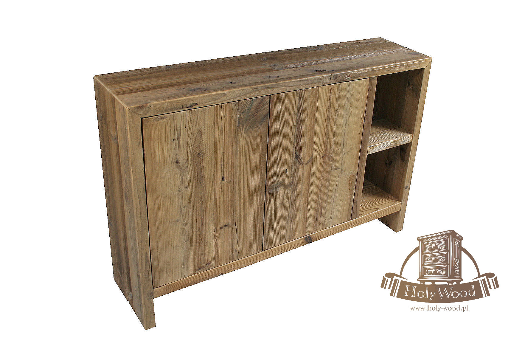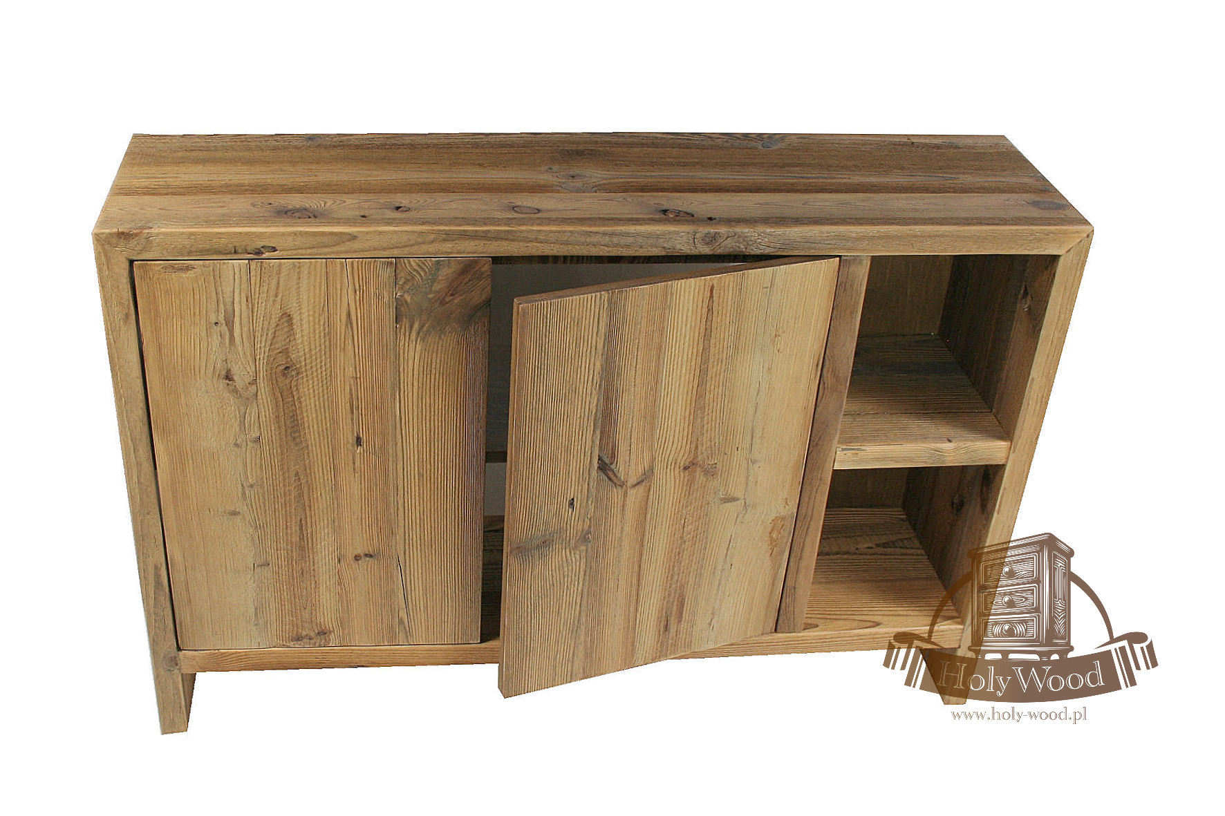 Całość  wykonana ze starego drewna sosnowego . Posiada ono bardzo nieregularną strukturę oraz głęboko wybrane słoje.